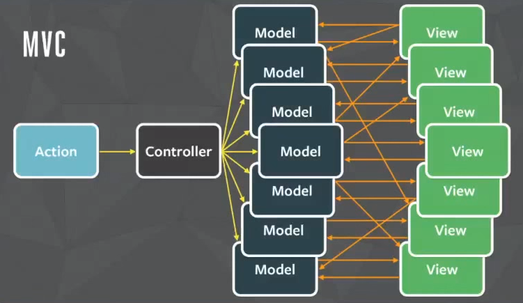 Flux의 도입 배경에 MVC가 등장한다. MVC는 양방향 데이터 흐름의 특징을 갖고 있는데 이 특징이 문제가 될 수 있다. 만약 어플리케이션이 복잡해지고 비대해진다면, 양방향으로 흐르는 데이터가 어플리케이션의 복잡도를 기하급수적으로 증가시킬 수 있다. 이는 우리의 코드가 읽기 어려워지고 예측이 불가능해진다는 것을 의미한다.