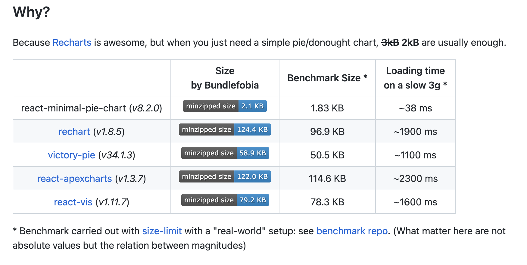 - react-minimal-pie-chart는 간단한 원형, 도넛형 차트를 그리는데 유용한 것 같다. 가볍다는 것을 장점으로 내세우고 있다.
