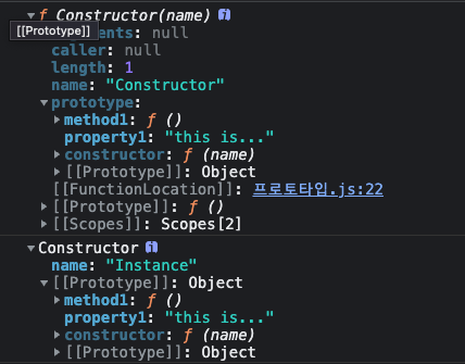 인스턴스에 생성자 함수의 속성과 메서드가 복제된 것을 확인할 수 있다.